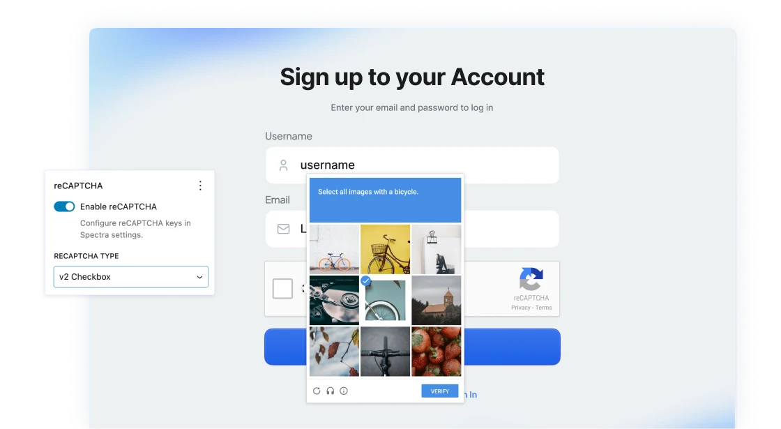 Add an extra layer of security to your forms. Spectra lets you set up HoneyPot and Google reCAPTCHA to help fight spam and deter bad actors.