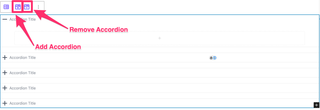 - Use the toolbar to add or remove accordion items