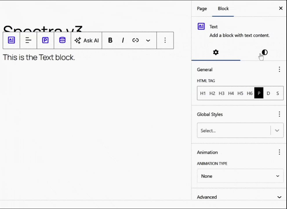 - Selected fonts work in all blocks that have typography controls – WordPress core blocks (Paragraph, Heading, etc.), third-party blocks with font family support, and Spectra blocks