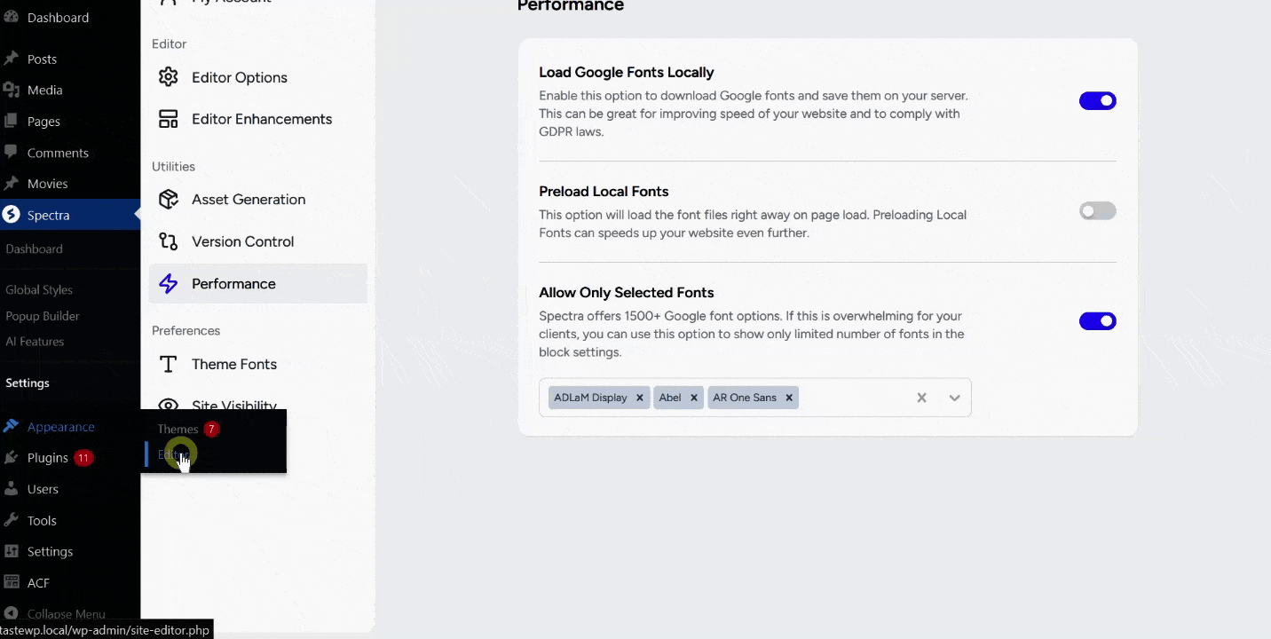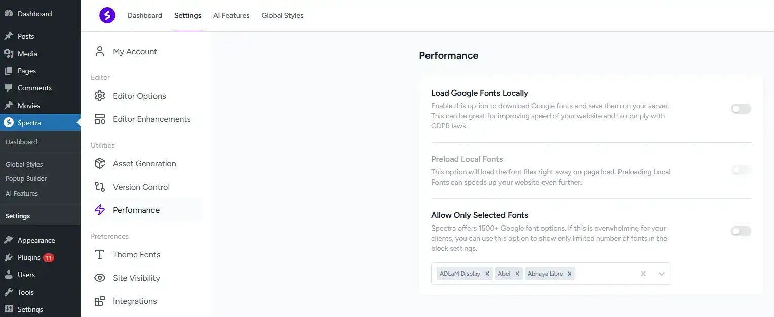 These settings control how fonts work across your entire website – not just Spectra blocks!