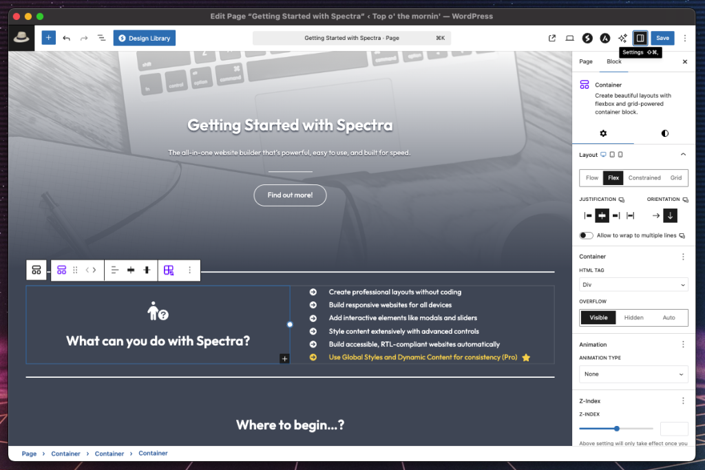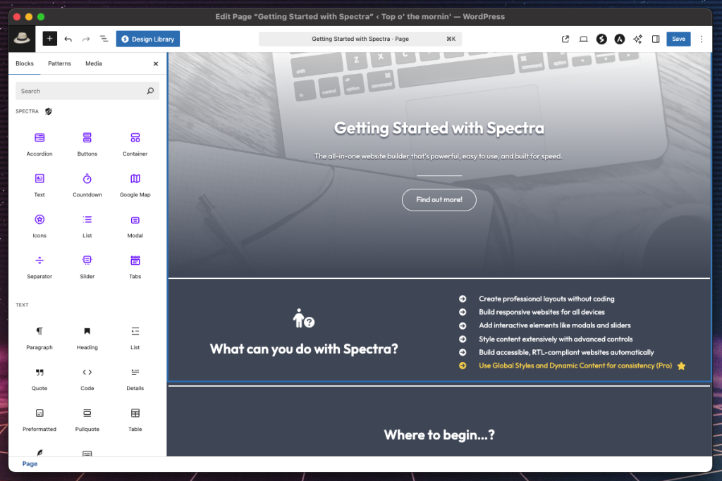 A: Spectra is designed for the WordPress block editor (Gutenberg). It won’t interfere with other page builders, and can works alongside other Gutenberg block-based tools.