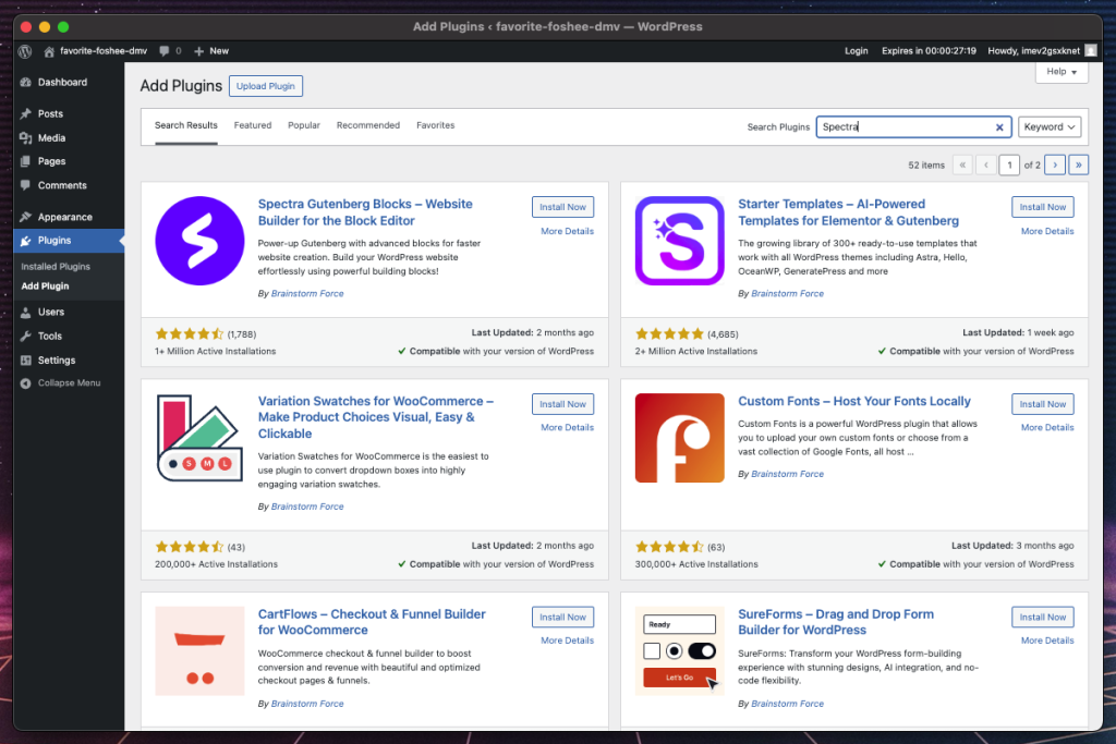 - Search for “Ultimate Addons for Gutenberg” or “Spectra”