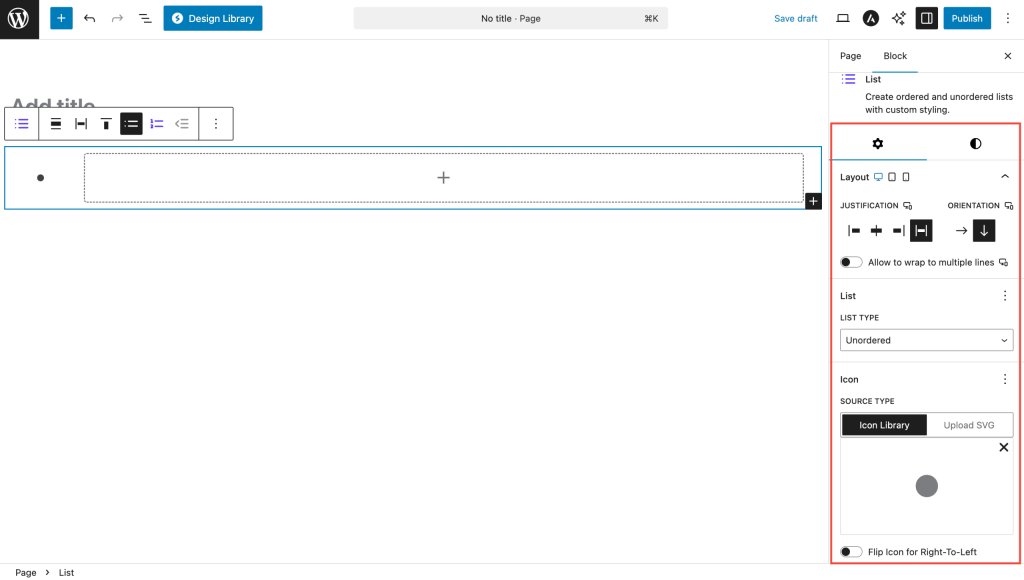 The List Block is an enhanced version of WordPress’s standard list functionality, offering advanced styling options, custom icons, and extensive customization capabilities. Perfect for creating feature lists, step-by-step instructions, table of contents, or any structured content that needs visual hierarchy. Unlike the core list block, this block allows you to use custom icons, advanced numbering styles, and individual item styling.