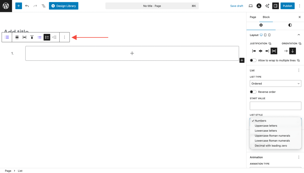 - Use the toolbar to switch between ordered/unordered