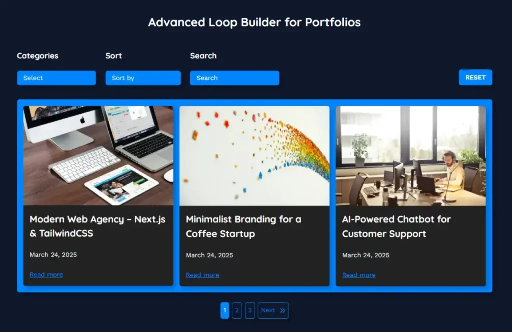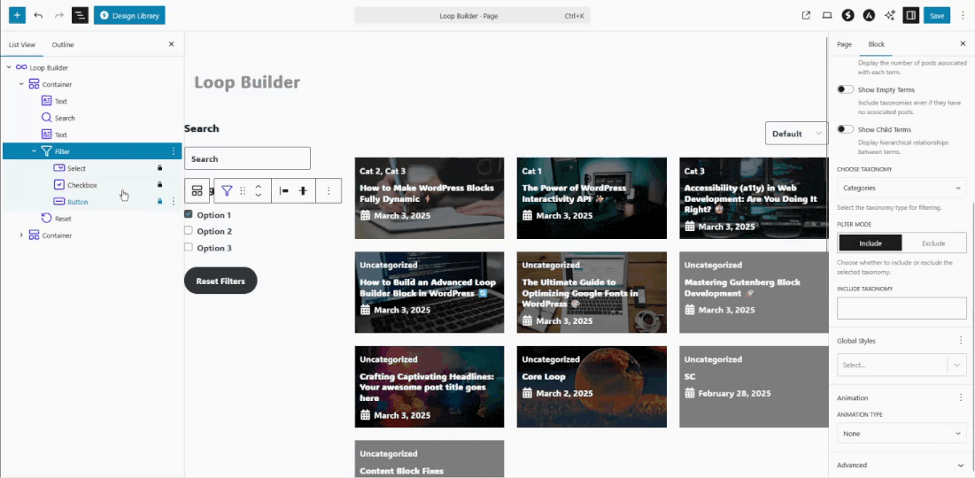 The Loop Builder automatically displays your latest posts. Customize the query, add filters, and style your layout using the comprehensive settings panels.