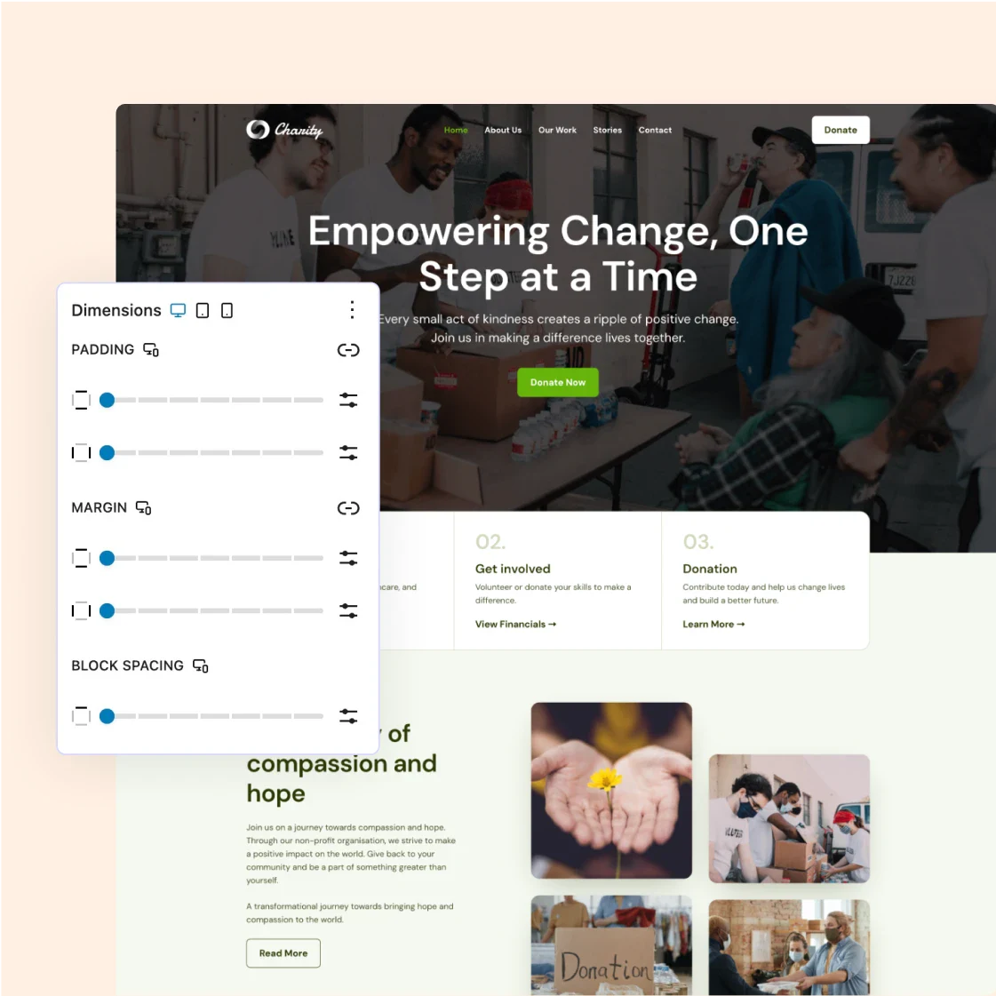With properly organized navigation for design and customization options for each block, you can make changes faster and easier without any frustrations. Just navigate to the settings and apply changes in just a few clicks.